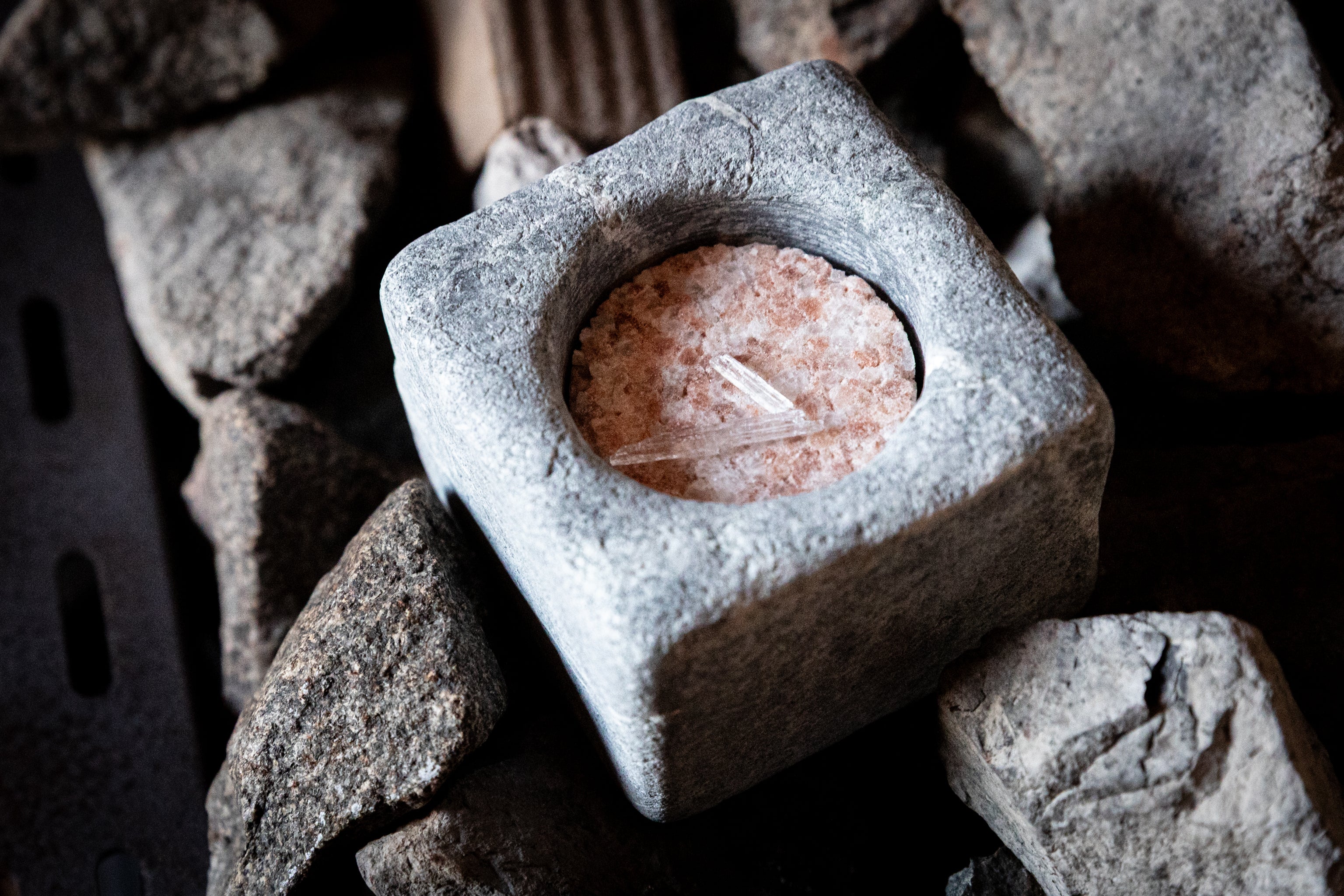 Kun Kiuassuola alkaa olla aivan vähissä, saat lopun suolan putsattua laittamalla hieman vettä kiehumaan kiveen, jolloin looput suolasta haihtuu pois ja pääset laittamaan tilalle uuden Kiuassuolan.